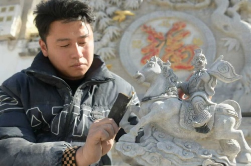 In a modest stone carving workshop in Zhengchang Village, Xun County, Henan Province, young artisan Zhang Jingpeng is breathing new life into an ancient tradition. Crouched over his workbench, sandpaper in hand, the third-generation stonemason meticulously polishes a piece of local bluestone, gradually transforming raw material into art.