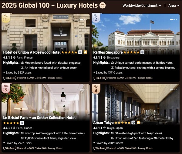New regional rankings:Trip.Best 2025 introduces Europe 100 and Americas 100 rankings for the first time,alongside existing Global 100 and Asia 100 rankings.