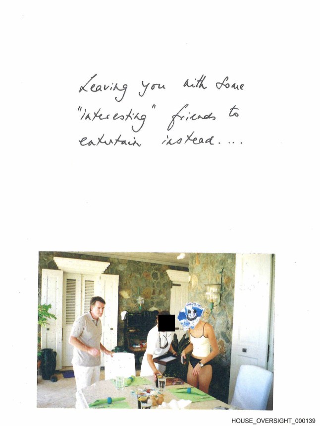 Another document released by the committee from the book appeared to show a message from US President Bill Clinton.